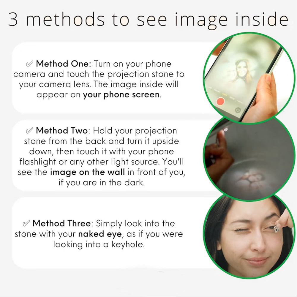 💖  Shine flashlight into photo pendant and project your photo onto the wall.